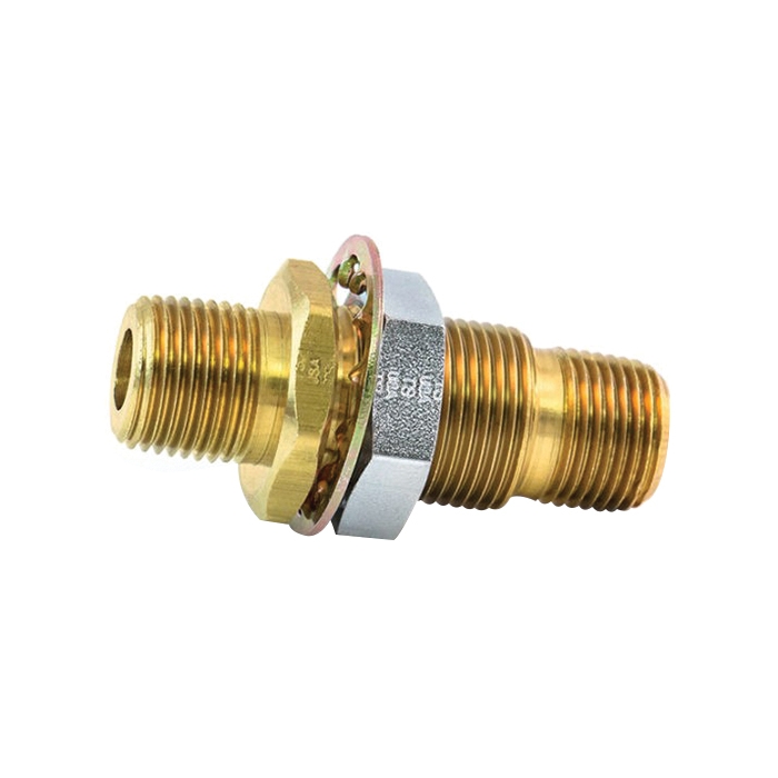 Tramec Sloan Bulkhead Terminal Bolt, Series: S600, Connection Type 1: NPTF, Gender 1: Female, Connection Size 1: 1/4 in, Thread Size 1: 1/4-18, Connection Type 2: NPTF, Gender 2: Male, Connection Size 2: 1/2 in, Thread Size 2: 1/2-14, Material Construction: Brass, Dimensions: 2-7/8 in L
