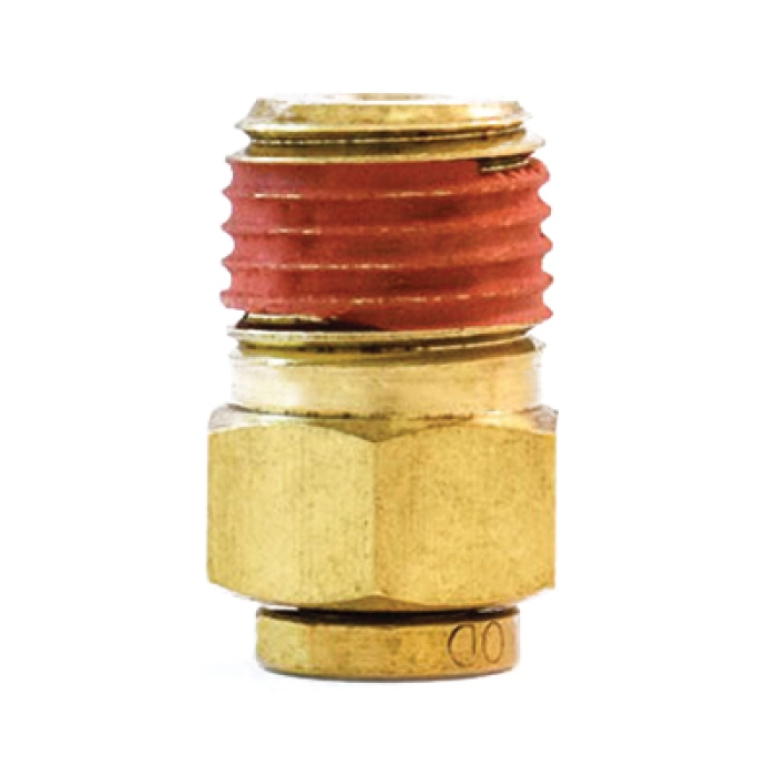 Tramec Sloan Connector, Series: S68PMT, Connection Type 1: Push-to-Connect, Connection Size 1: 1/4 in, Connection Type 2: NPT, Gender 2: Male, Connection Size 2: 1/4 in, 145 psi, Material Construction: Brass, -40 to 225 deg F, For Use With: SAE J844 Air Brake Tubing