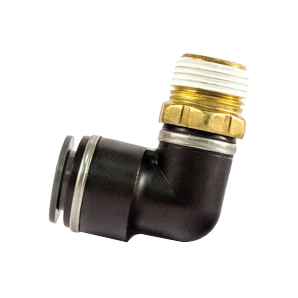 Tramec Sloan 90 deg Elbow, Series: S769PMT, Connection Type 1: Push-to-Connect, Connection Size 1: 1/2 in, Connection Type 2: NPT, Gender 2: Male, Connection Size 2: 1/4 in, Up to 145 psi, Material Construction: Composite, -40 to 140 deg F, For Use With: SAE J844 Nylon Air Brake Tubing