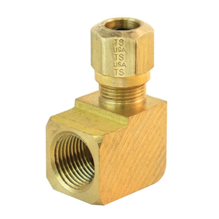 Tramec Sloan 90 deg Compression Elbow, Series: S770AB, Connection Type 1: Tube, Connection Size 1: 1/2 in, Connection Type 2: NPT, Gender 2: Female, Connection Size 2: 1/2 in, Up to 150 psi, Material Construction: Brass, -40 to 200 deg F