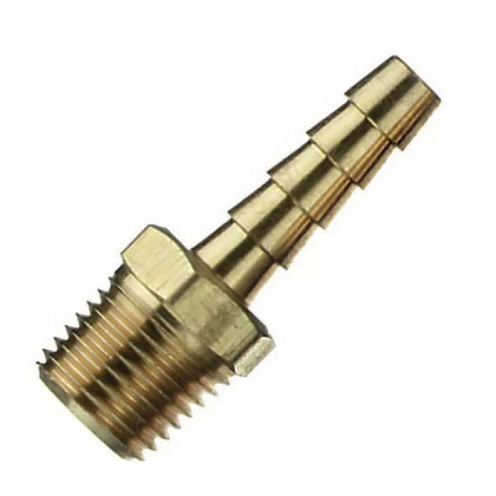 Tru-Flate Hose End, Connection Type 1: Hose Barb, Connection Size 1: 5/16 in, Connection Type 2: NPT, Gender 2: Male, Connection Size 2: 1/4 in, Material Construction: Brass, For Use With: Hose Clamp or Ferrules