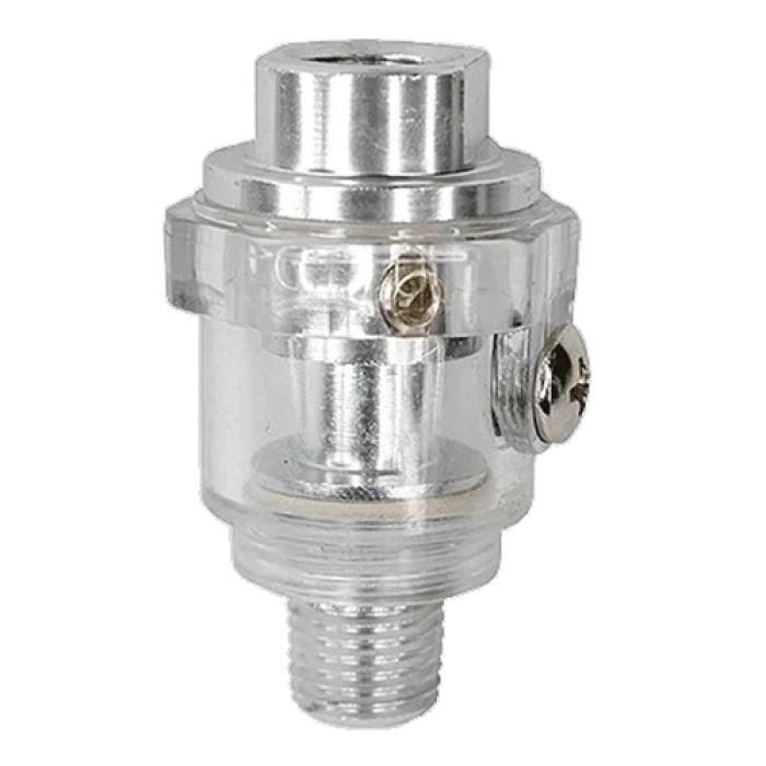 A compact oiler that fastens directly to the air tool. Precisely meters proper amount of oil to the tool only when the tool is in use. No adjustments necessary. 1/4 in male NPT outlet, 1/4 in female NPT inlet. Use on all air impact guns, air wrenches, body shop air tools and pneumatic hammers requiring 1/4 in air lines. Prevents "burn out" of expensive pneumatic tools, stops rust and increases torque up to 25% Carded.