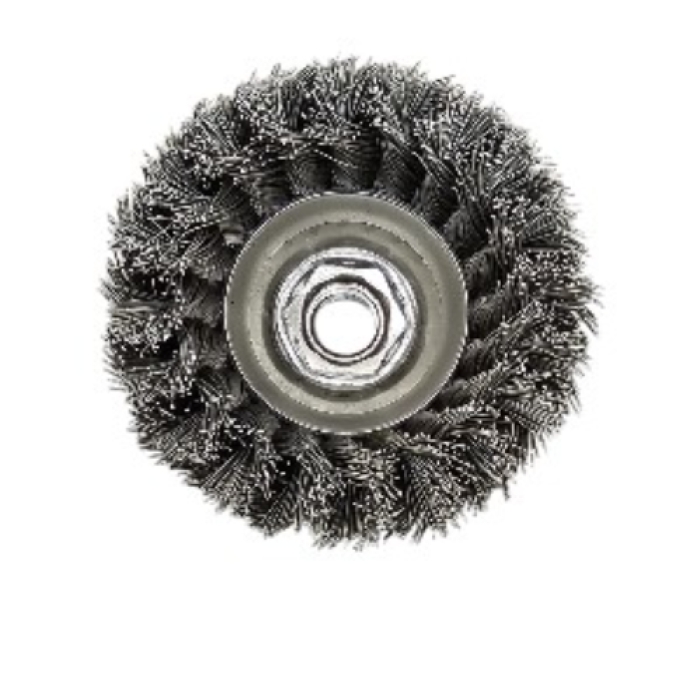 VORTEC PRO® Cup Brush, 3-1/2 in Brush Diameter, 5/8-11 Arbor, Carbon Steel Bristle, 0.02 in Bristle Diameter, Knotted Bristle, 13000 rpm Maximum Speed, Threaded Mounting