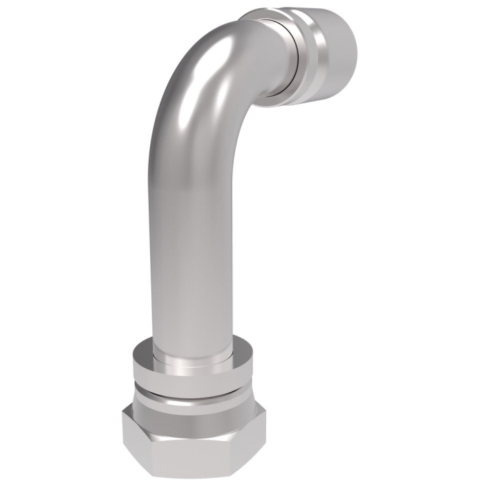 Weatherhead® Crimp Hose 90 deg Long Drop Elbow, Series: 069 E, Connection Type 1: Hose, Gender 1: Female, Connection Size 1: 1-1/4 in, Hose Dash Size: 20, Connection Type 2: 37 deg JIC Swivel, Gender 2: Female, Connection Size 2: 1-1/4 in, Nominal Size: 1-1/4 in, Thread Size 2: 1-5/8-12, Hex Size: 2 in, 5000 psi, Cut-Off Factor: 2.9 in, Material Construction: Carbon Steel, Finish: Zinc Clear Trivalent Chromate, For Use With: H059, H069, H166, H169, H229, H239, H366, and H569 Hoses, Dimensions: 5.32 in L x 2 in W x 6.86 in H, Dimension Standards: SAE 100R5