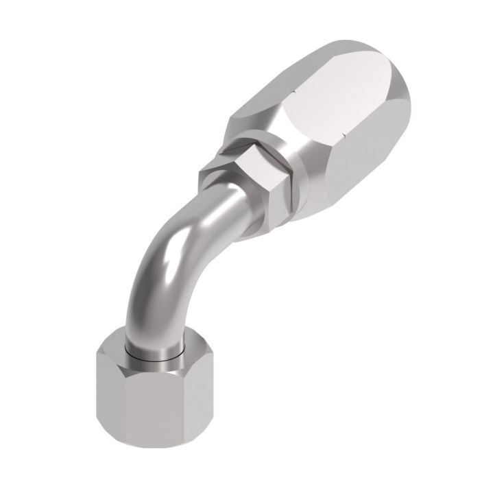 Weatherhead® 100R1 Field Attachable Reusable 90 deg Tube Elbow, Series: 104 N, Connection Type 1: Hose, Connection Size 1: 1 in, Hose Dash Size: 16, Connection Type 2: 37 deg JIC Swivel, Gender 2: Female, Connection Size 2: 1 in, Nominal Size: 1 in, Thread Size 2: 1-5/16-12, Hex Size: 1-1/4 x 1-1/2 in, Cut-Off Factor: 3.71 in, Material Construction: Carbon Steel, Finish: Dura-Kote, For Use With: H104 Series Hoses, Dimensions: 5.89 in L x 1.75 in W x 3.63 in H, Dimension Standards: SAE 100R1