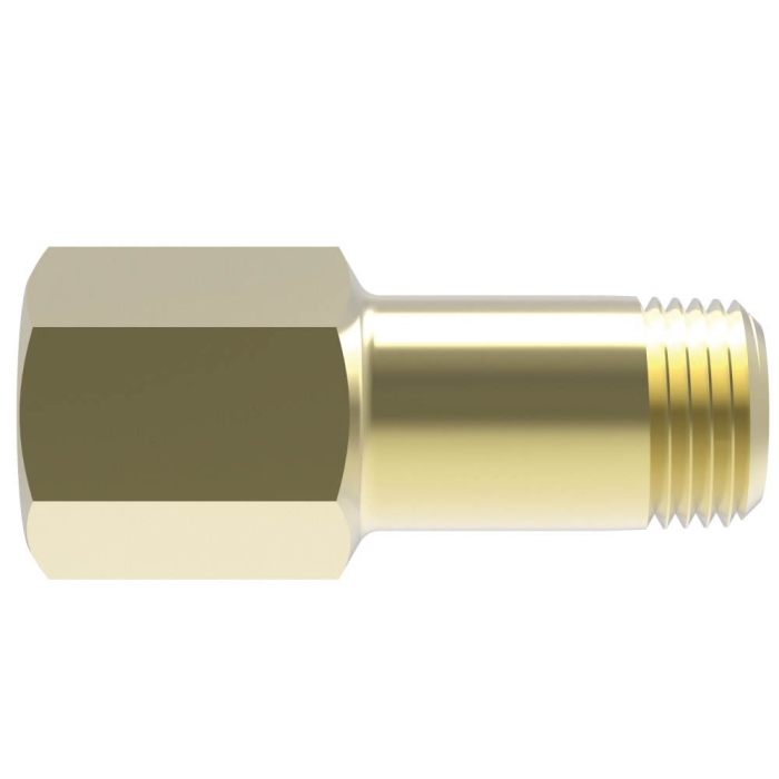 Weatherhead® Straight Adapter, Series: 200001, Connection Type 1: 42 deg Inverted Flare, Gender 1: Male, Connection Size 1: 1/2 in, Thread Size 1: 3/4-18, Connection Type 2: SAE 37 deg JIC Flare, Gender 2: Male, Connection Size 2: 1/2 in, Thread Size 2: 3/4-16, Hex Size: 0.89 in, Material Construction: Brass, Dimensions: 1.43 in L x 0.81 in W x 0.81 in H