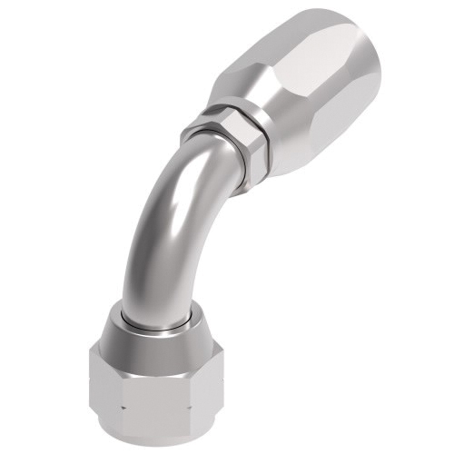 Weatherhead® 247 N Field Attachable Reusable 90 deg Elbow, Hose X SAE 45 deg Flare Swivel, Zinc Clear Trivalent Chromate, Carbon Steel, 7000 psi