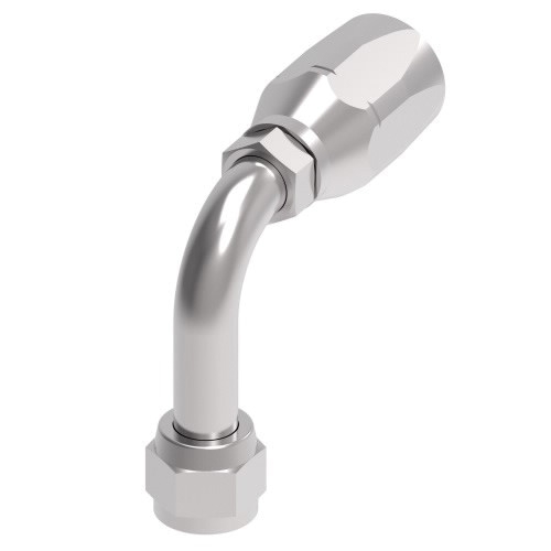 Weatherhead® Field Attachable Reusable 90 deg Elbow, Series: 247 N, Connection Type 1: Hose, Connection Size 1: 5/16 in, Hose Dash Size: 05, Connection Type 2: SAE 45 deg Swivel, Gender 2: Female, Connection Size 2: 3/8 in, Nominal Size: 3/8 in, Thread Size 2: 5/8-18, Hex Size: 13/16 x 3/4 in, 7000 psi, Cut-Off Factor: 1.23 in, Material Construction: Carbon Steel, Finish: Zinc Clear Trivalent Chromate, For Use With: H059, H069, H166, H169, H229, H366, and H569 Hoses, Dimensions: 2.5 in L x 0.81 in W x 3.01 in H, Dimension Standards: SAE 100R5