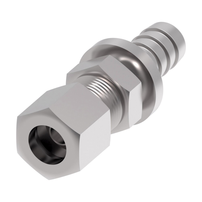 Weatherhead® Permanent Straight Crimp Hose Fitting, Series: 338 P, 2.69 in Length, 7/8 in Width, 7/8 in Height, Hole Size: 0.41 in, Connection Type 1: Hose, Connection Size 1: 1/2 in, Connection Type 2: Slider Line, Connection Size 2: 1/2 in, Material Construction: Brass, For Use With: Air Brake Hose Lines, Hex Size: 7/8 x 13/16 in