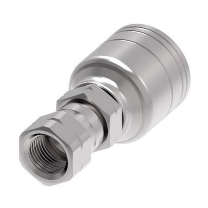 Weatherhead® by DanfossCrimp Straight Hose Fitting, Series: Z, Connection Type 1: Hose, Connection Size 1: 3/8 in, Hose Dash Size: 06, Connection Type 2: SAE 45 deg Swivel, Gender 2: Female, Connection Size 2: 3/8 in, Nominal Size: 3/8 in, Thread Size 2: 5/8-18, Hex Size: 0.75 x 0.6875 in, Cut-Off Factor: 1.31 in, Material Construction: Carbon Steel, Finish: Dura-Kote, For Use With: H104, H145, H145R, H190, H190H, H245, H245L, H280, H290, H290H, H290L, H345, H350, H400, H421, H425, H1777 (-04, -06, 08), H1776 (-04 thru -20), H1571 (-12 only), H6002 (-08, -12, -16), H6008 (-16 and -20), H6009 (-20 only), H9622 (-12, -16, -20), H265 (-04, -06, -08, -12, -16), H275 (-04 thru -16), H1812 (-04 thru -20), H0106 (-04 thru -10), H0105 (-06 thru -12, -20), H116 (-04, -06, -08), H115 (-04 thru -20), H1982 (-06 thru -16), H1981 (-04, -06, -08), H9949, EC115, EC215, EC110, EC210, and EC118 Series Hoses, Dimensions: 2.31 in L x 1.07 in W x 1.07 in H, Dimension Standards: SAE J1176