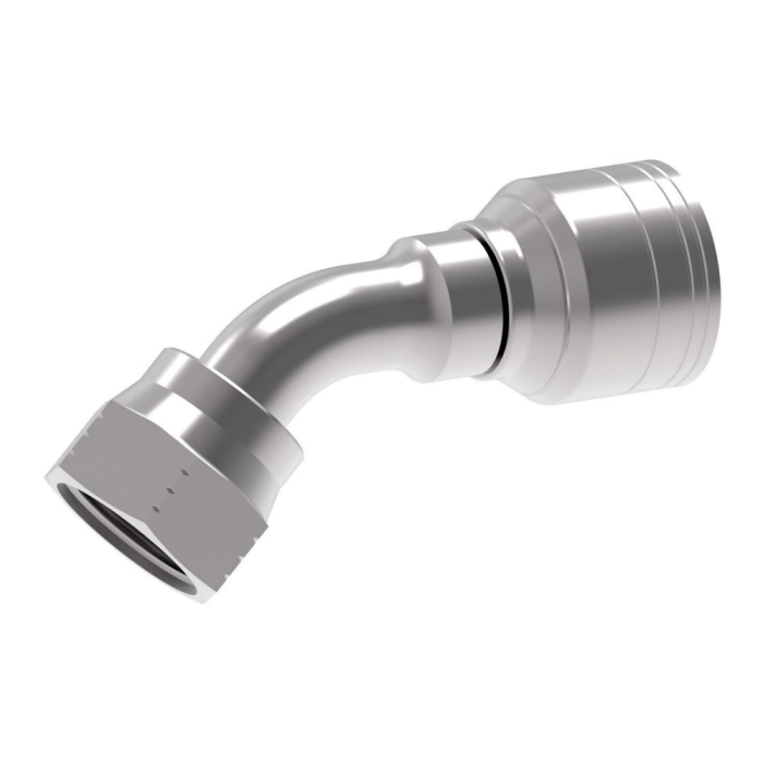 Weatherhead® Coll-O-Crimp E Crimp Hose 45 deg Elbow, Hose X SAE 37 deg JIC Swivel, Zinc Clear Trivalent Chromate, Carbon Steel
