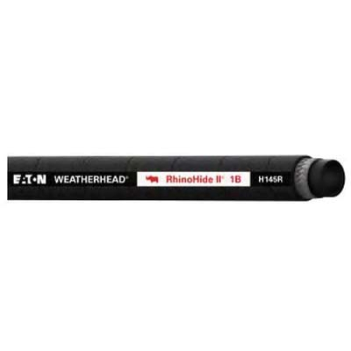 Weatherhead® RhinoHide II® Braided Hydraulic Hose, Series: H145R, Nominal Size: 1/2 in, Dash Size: 08, 0.85 in OD, 1/2 in ID, 0.15 in Thick Wall, 21 ft Length, 3050 psi, SAE Rating: SAE 100R17, Material Construction: Synthetic Rubber, UHMWPE Cover, Construction: 1-Ply Wire Braid, Black, 3.54 in Bend Radius, Resistance Properties: Abrasion, -40 deg F Low, 212 deg F High