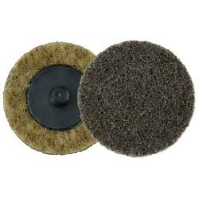 WEILER® Non-Woven Surface Conditioning Disc, 2 in Diameter, Coarse Grit Grade, Aluminum Oxide Abrasive, 30000 rpm Maximum Speed, Button, Type R Hub Attachment, Applicable Materials: Aluminum, Stainless Steel, Brown