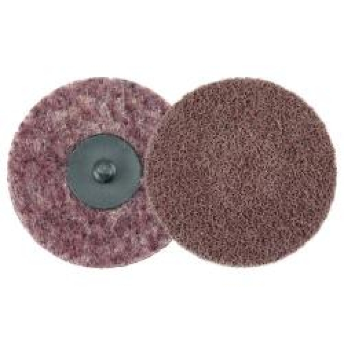 WEILER® Non-Woven Surface Conditioning Disc, 3 in Diameter, Medium Grit Grade, Aluminum Oxide Abrasive, 20000 rpm Maximum Speed, Button, Type R Hub Attachment, Applicable Materials: Aluminum, Stainless Steel, Maroon