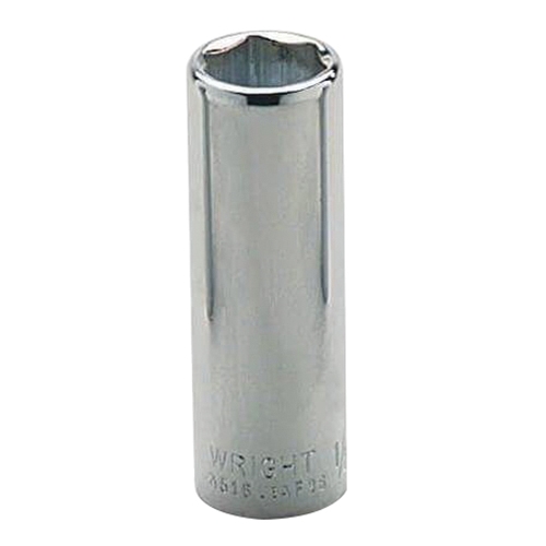 Wright DriveĀ® 6-Point Socket, Measuring System: SAE, Drive Size: 1/4 in, Deep Socket, Socket Size: 7/32 in, 2 in OAL, 15/32 in Width Drive End, 11/32 in Width Socket End, Opening Depth: 7/64 in, Shape: I, Material Construction: Alloy Steel, Finish: Chrome-Plated