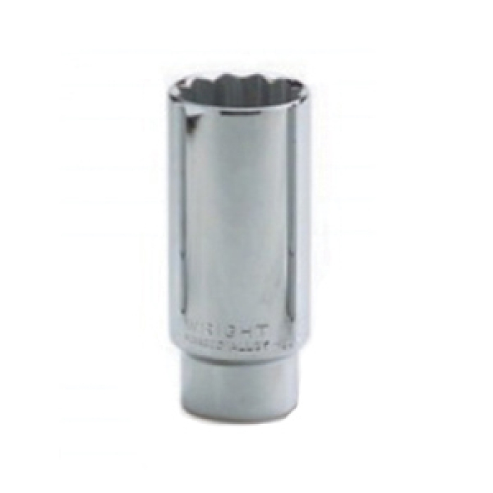 Wright Drive® 12-Point Socket, Measuring System: SAE, Drive Size: 1/2 in, Square Drive, Deep Socket, Socket Size: 1/2 in, 3-3/64 in OAL, 7/8 in Width Drive End, 47/64 in Width Socket End, Opening Depth: 17/64 in, Material Construction: Alloy Steel, Finish: Chrome-Plated
