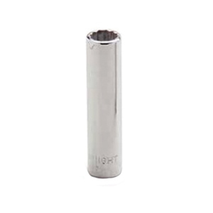 Wright Drive® 12-Point Socket, Measuring System: SAE, Drive Size: 1/4 in, Deep Socket, Socket Size: 7/32 in, 2-1/32 in OAL, 7/16 in Width Drive End, 11/32 in Width Socket End, Opening Depth: 7/64 in, Material Construction: Alloy Steel, Finish: Chrome-Plated