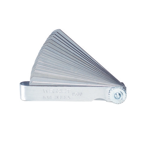 - Contains 3-5/16 x 1/2 in blades of the thicknesses 0.0015, 0.008, 0.015, 0.028, 0.002, 0.009, 0.016, 0.03, 0.003, 0.01, 0.018, 0.032, 0.004, 0.011, 0.02, 0.035, 0.005, 0.012, 0.022, 0.006, 0.013, 0.024, 0.007, 0.014 and 0.025
