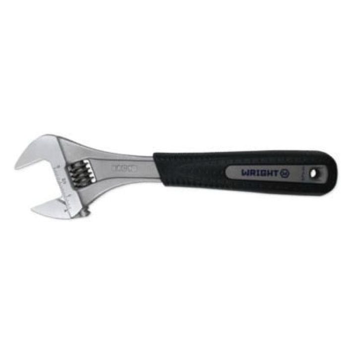 Wright Tool Adjustable Wrench, Jaw Capacity: 1/2 in, 4 in OAL, Head Angle: 15 deg, Handle Style: Ultimate Cushion Grip, Wide Beam, Material Construction: Forged Alloy Steel, Finish: Cobalt, Handle Material: Plastic